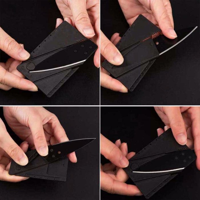 This credit card knife is super light and sharp it is the same size as your credit card, making it the perfect size to fit directly into your wallet. Just three simple folding operations transform this card into an elegant pocket knife utility tool. Slimmer and lighter than an ordinary knife made from plastic with a stainless steel blade to ensure its long lasting durability.
