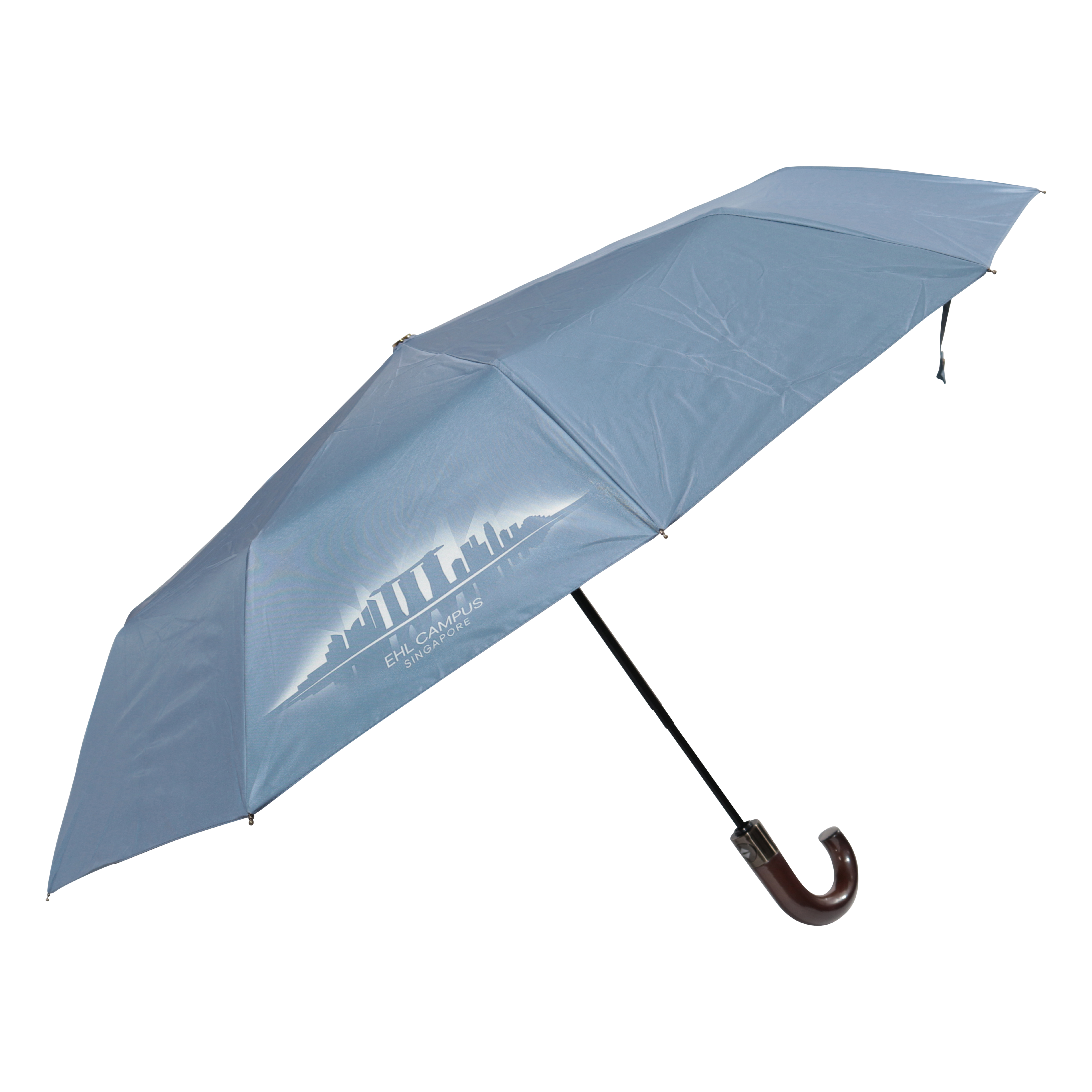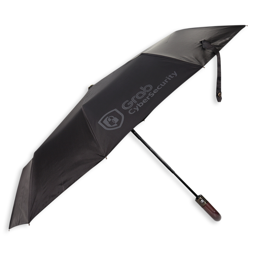 This foldable umbrella with a premium J-hook wooden handle is the perfect corporate gift for professionals.