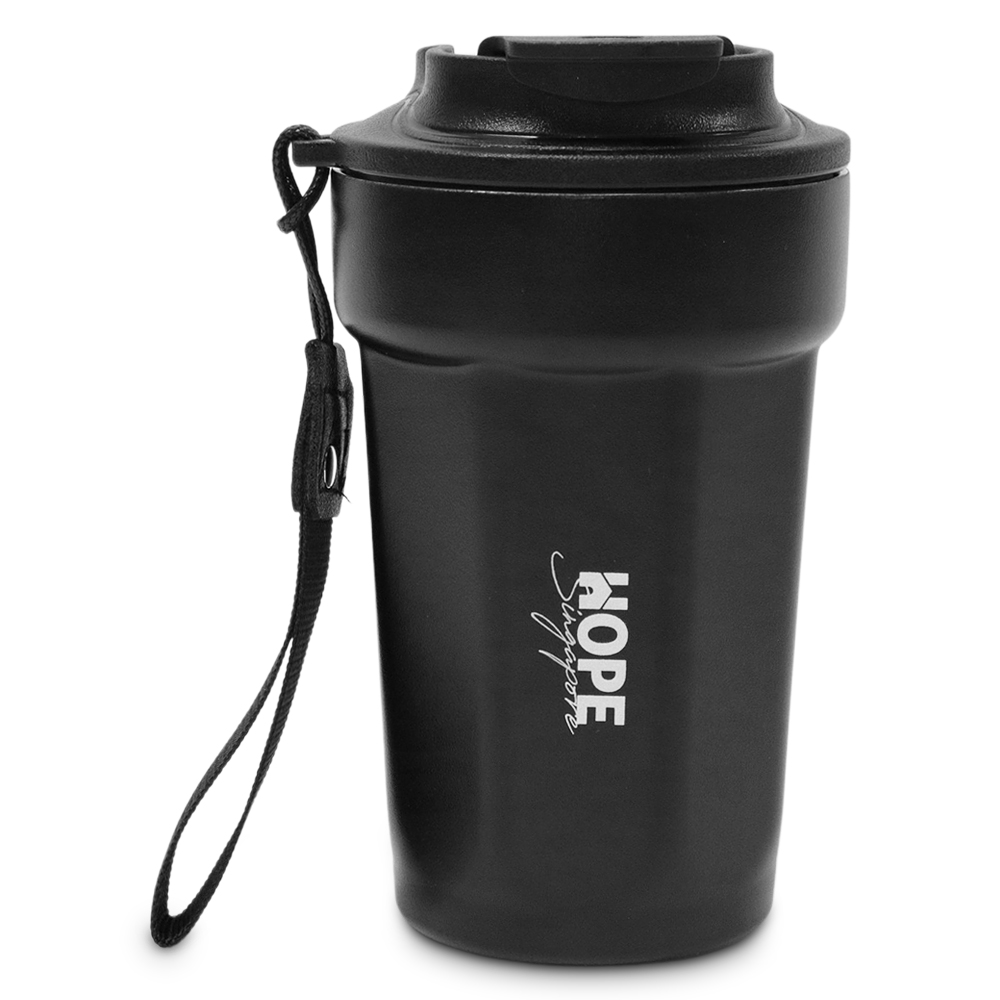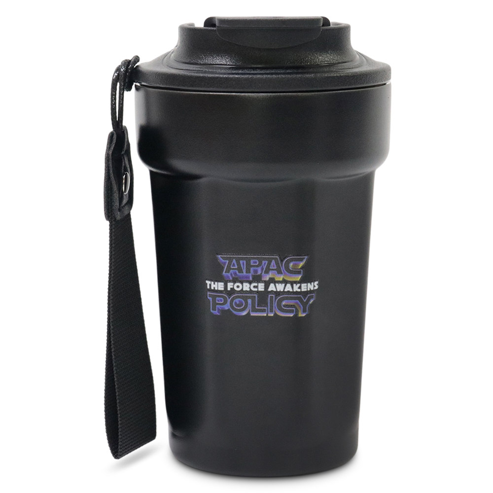 Sleek, sturdy, and made for life on the move – this 450ml stainless steel tumbler is perfect for coffee or tea lovers. It features an anti-slip base for added stability and a convenient strap for easy carrying. A stylish and practical gift that keeps drinks at the right temperature and your brand front of mind