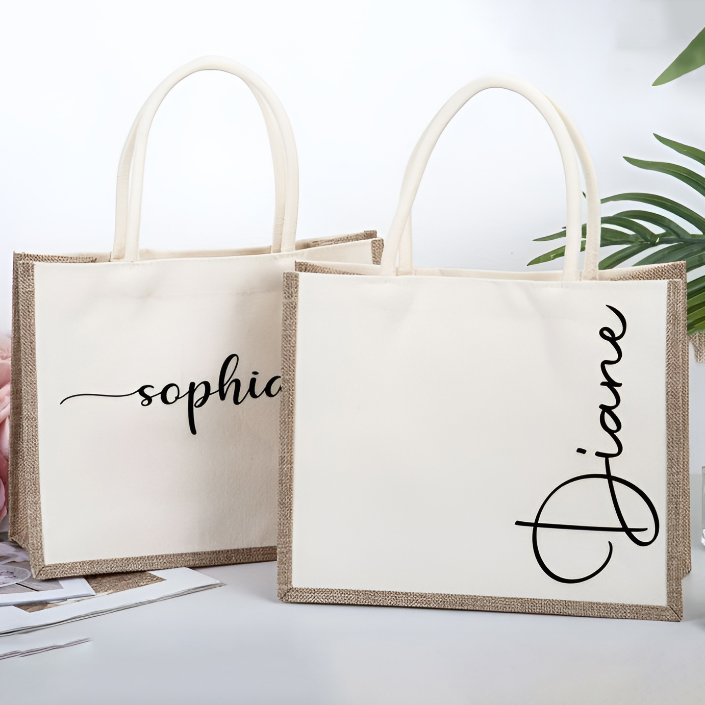 Spacious, sturdy, and made for everyday carry. This large canvas jute tote combines the natural texture of jute with the durability of canvas, giving it a structured shape that holds its form even when full. The laminated interior adds extra strength and protection, making it more durable and easy to maintain. Perfect for grocery runs, work essentials, short trips, or weekend outings. Wide handles provide comfortable shoulder carry, while the roomy interior fits everything you need in one stylish, eco-friendly bag.