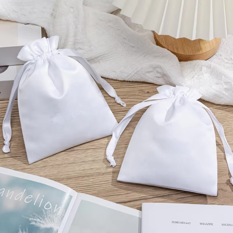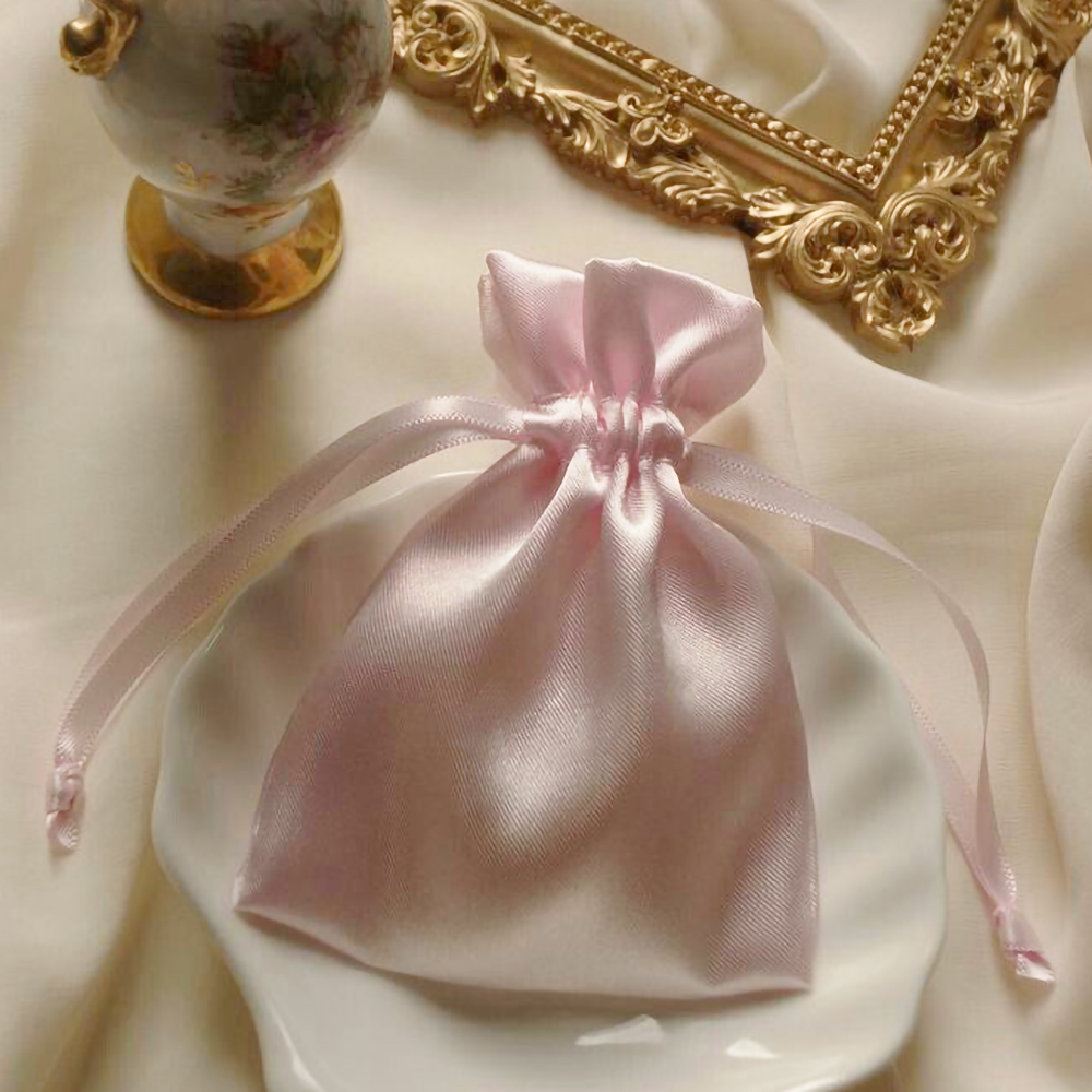Crafted from smooth satin with a gentle sheen, this pouch offers a refined and elegant way to present small items. The ribbon drawstring closure adds a delicate finishing touch while keeping contents secure. Ideal for jewellery, charms, small accessories, wedding favours, and premium gift packaging.