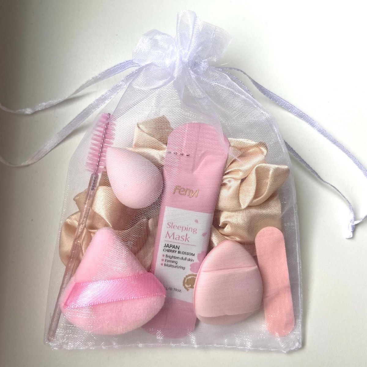 A roomy organza pouch with a soft ribbon closure, ideal for larger keepsakes, gift sets, and refined retail packaging.