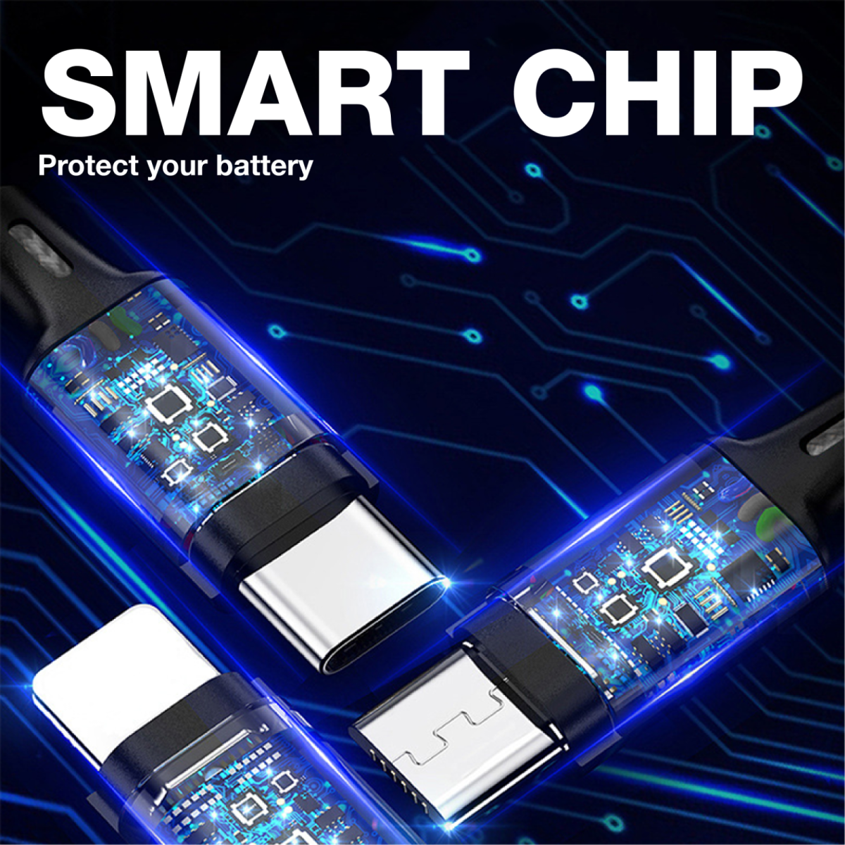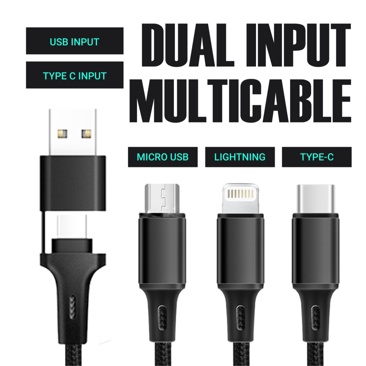 3 in 2 Fast Charging Multi Cable (with Type-C+Type-A)