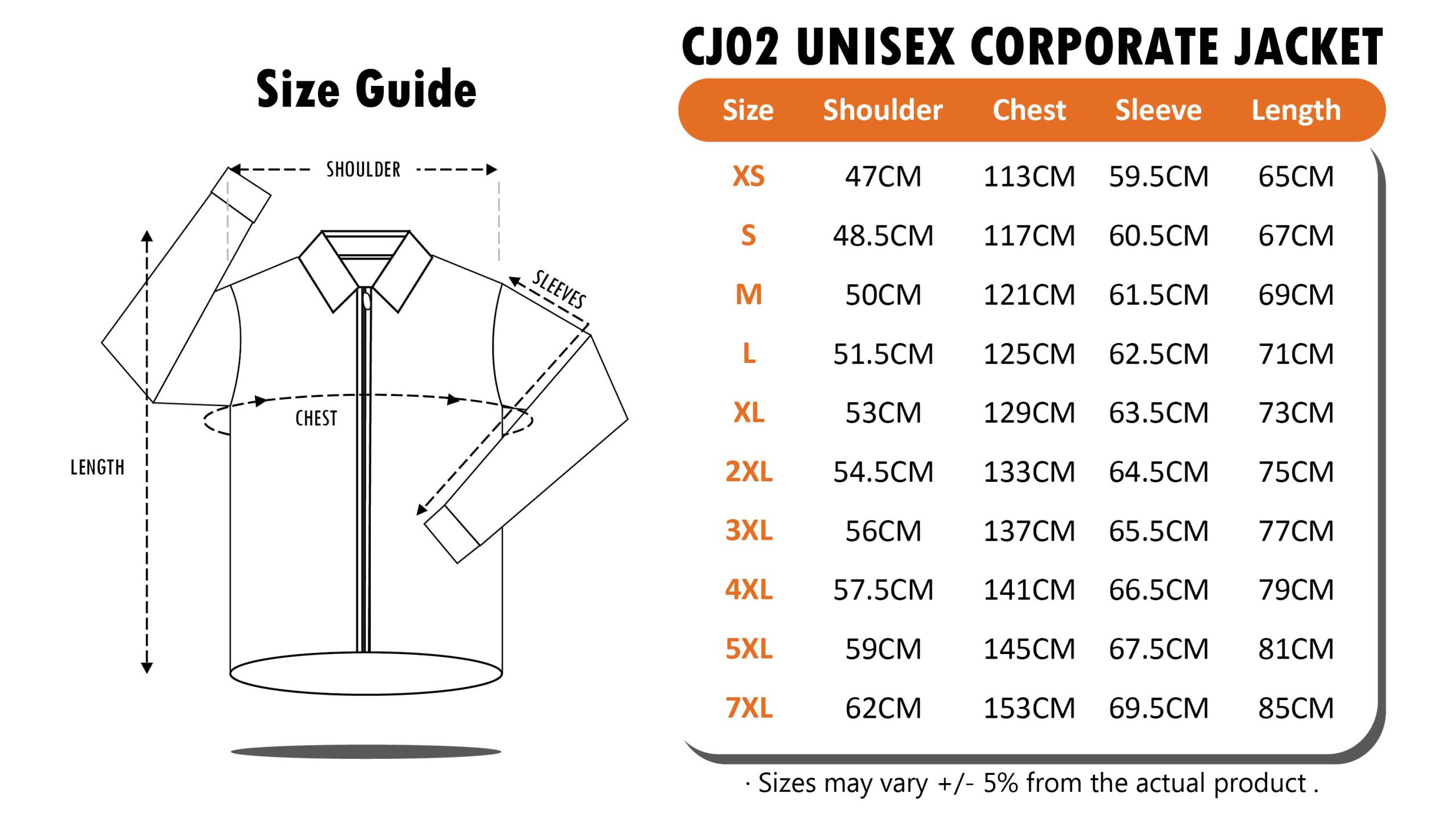 XS to 7XL