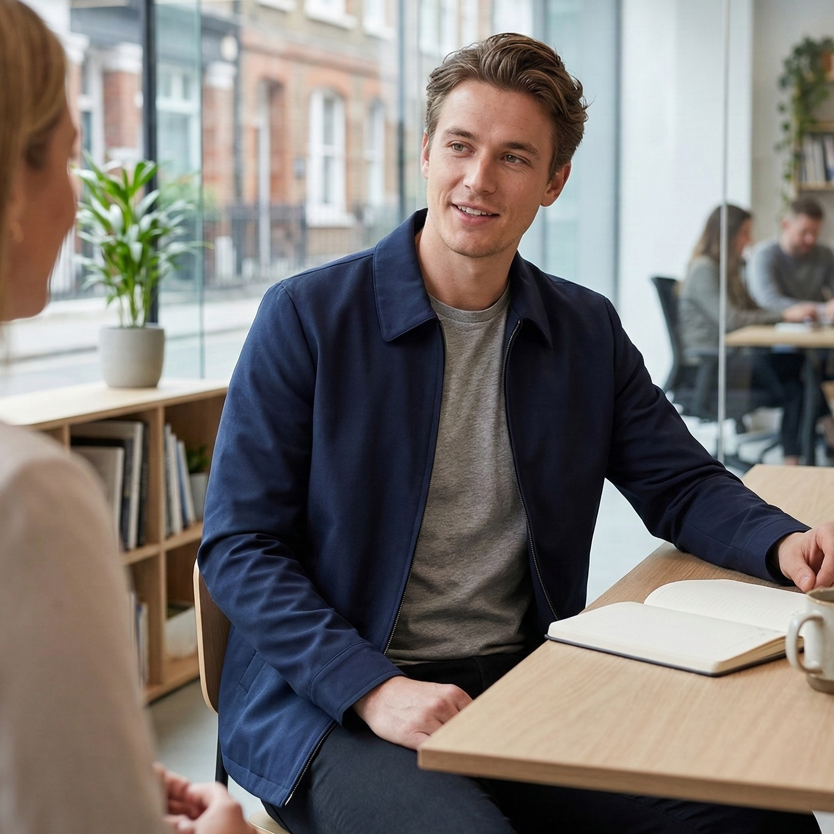 This versatile jacket offers the perfect balance between comfort and professionalism, making it suitable for everyday office wear as well as meetings and corporate events. Designed with a zip-through cadet collar and practical front zippered pockets, it delivers a clean and polished look.